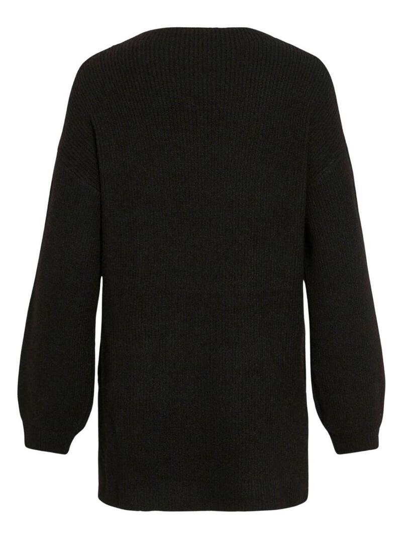 Maglia in maglia di Vila. Modello Vilassia. Colore nero. Spalle leggermente cadenti. Dettaglio di aperture laterali. Maglia elastica e morbida. Taglio ampio. Taglio stile tunica.