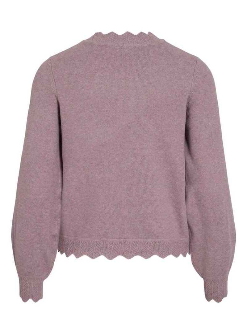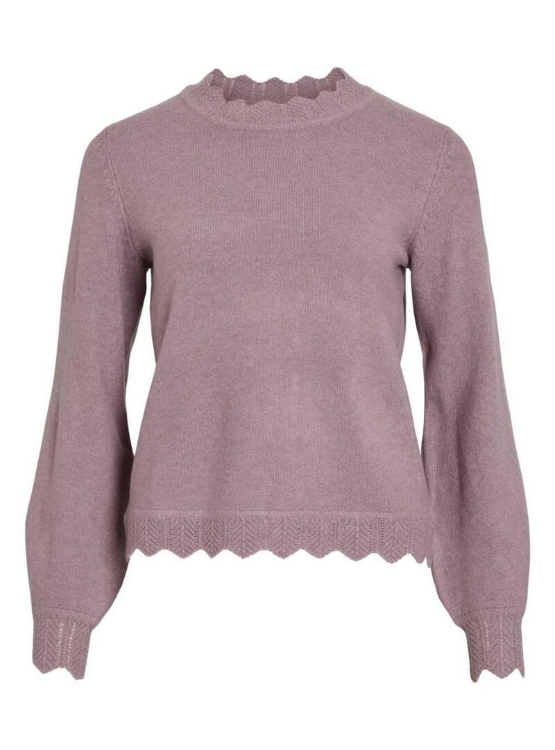 Maglia Vila. Modello Kolina. Colore viola. Colletto rotondo. Manica lunga. Vestibilità regolare. Finiture con bordo intrecciato.