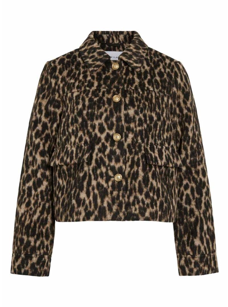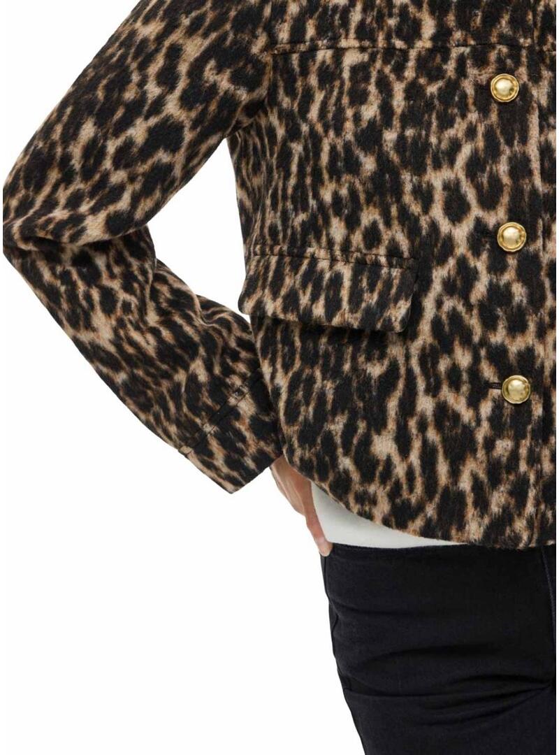 Giacca Vila. Modello Visimba. Stampa animalier. Chiusura frontale con bottoni decorativi. Tasche frontali con patta. Fodera interna. Taglio regolare. Colletto da camicia.