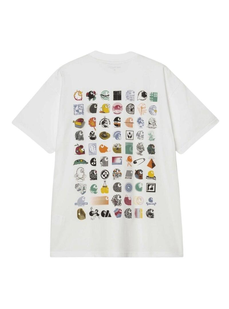 Maglietta Carhartt. Modello Logo Archive. Colore bianco. Manica corta. Collo rotondo. Taglio ampio. Stampe grafiche originali. Tessuto in maglia di cotone organico.