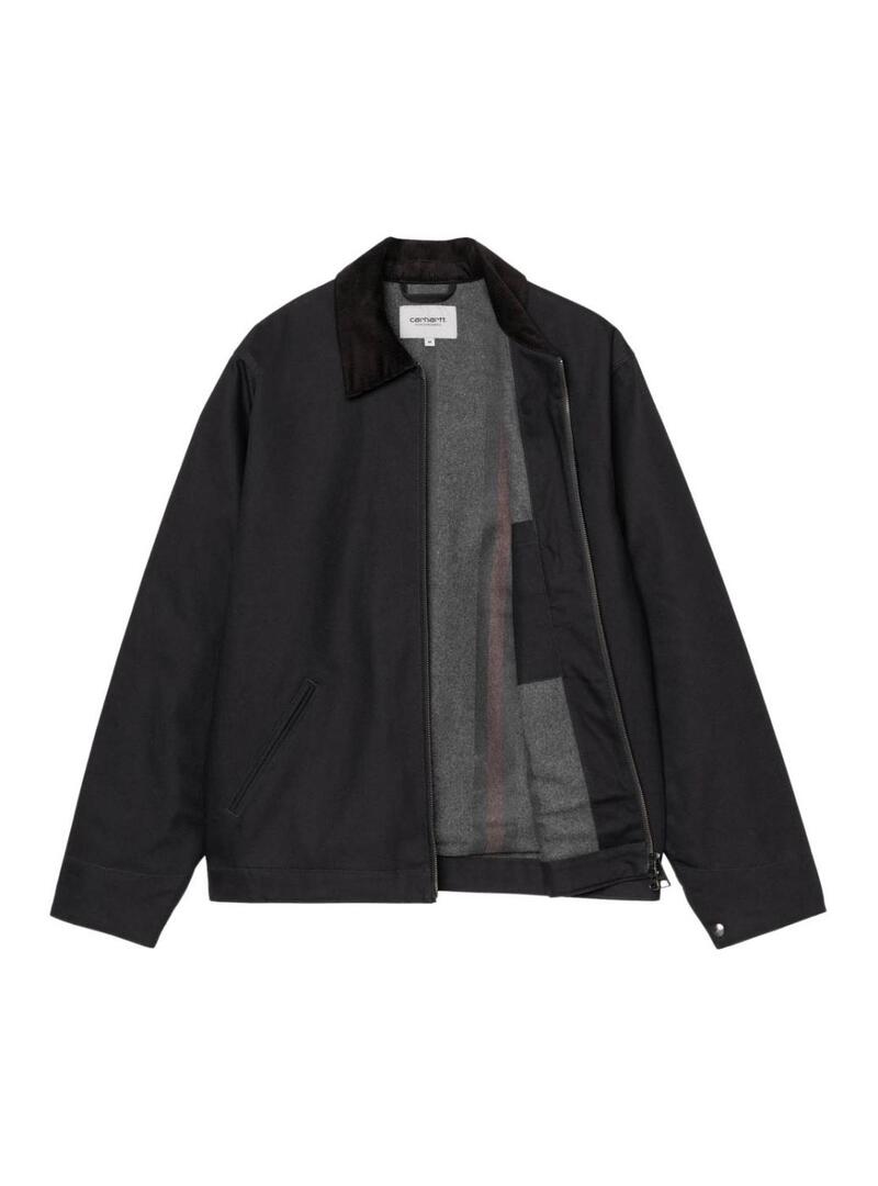 Giacca Carhartt. Modello Detroit. Colore nero. Taglio dritto. Tessuto esterno in tela. Chiusura con zip bidirezionale. Colletto in velluto a contrasto. Etichetta del marchio. Tasche laterali. Tessuto in flanella all'interno con stampa geometrica. Fodera morbida e vellutata.
