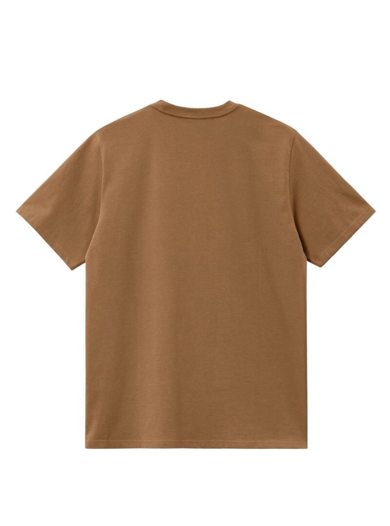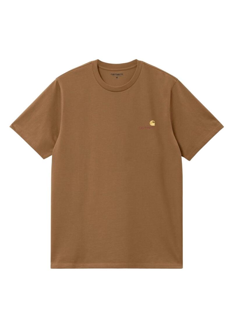 Maglietta Carhartt. Modello American Script. Colore marrone. Collo rotondo. Taglio quadro. Manica corta. Stile basic. Logo ricamato sul petto.