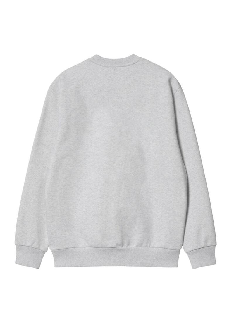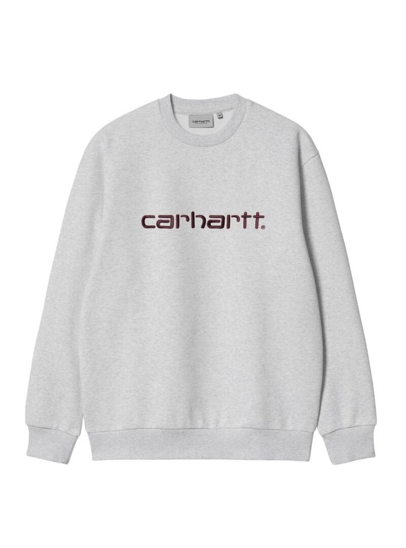 Felpa Carhartt. Modello basic con marchio sul petto. Collo rotondo. Colore grigio mélange. Logo ricamato in color granata. Orli a costine. Vestibilità regolare.