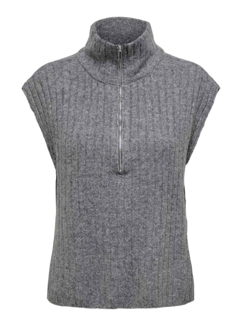 Gilet Only. Modello Jeanett. Colore grigio. Collo alto con mezza zip. Tessuto a coste. Spalle leggermente cadenti. Stile basic. Tocco morbido e caldo.