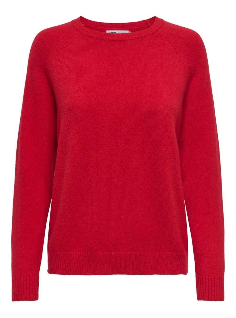 Maglia Only. Modello Lesly. Colore rosso. Collo tondo. Orli a costine. Taglio regolare. Tessuto leggero. Stile basic.