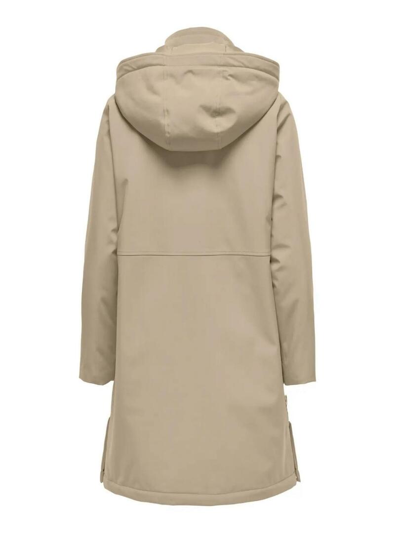 Parka Only. Modello Kara. Colore beige. Cappuccio integrato. Manica lunga. Chiusura frontale con zip. Tasche laterali con zip. Lunghezza intera. Capo imbottito con riempimento sintetico di alta qualità. Coulisse regolabile in vita.