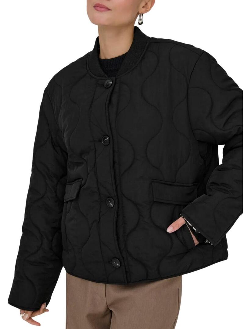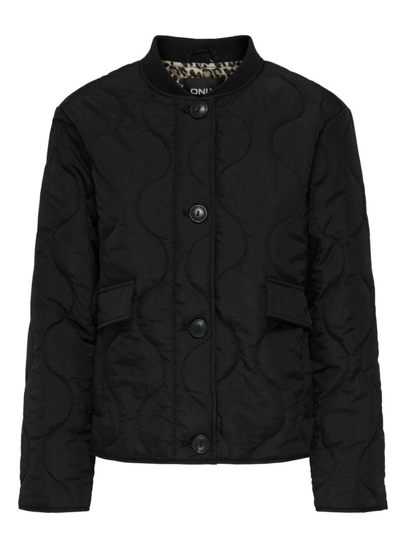 Giacca Only. Modello Salsa. Colore nero. Colletto a costine stile bomber. Tessuto con imbottitura geometrica. Chiusura con bottoni. Tasche laterali con patta. Taglio dritto. Fodera stampata con motivo animalier.