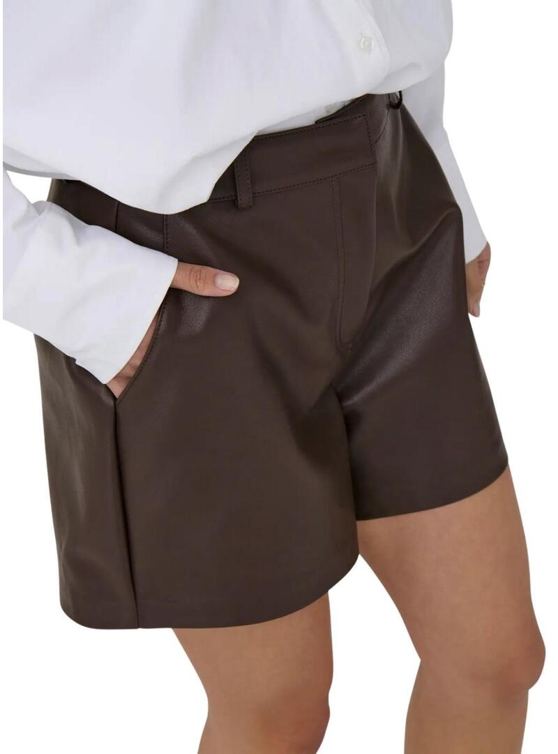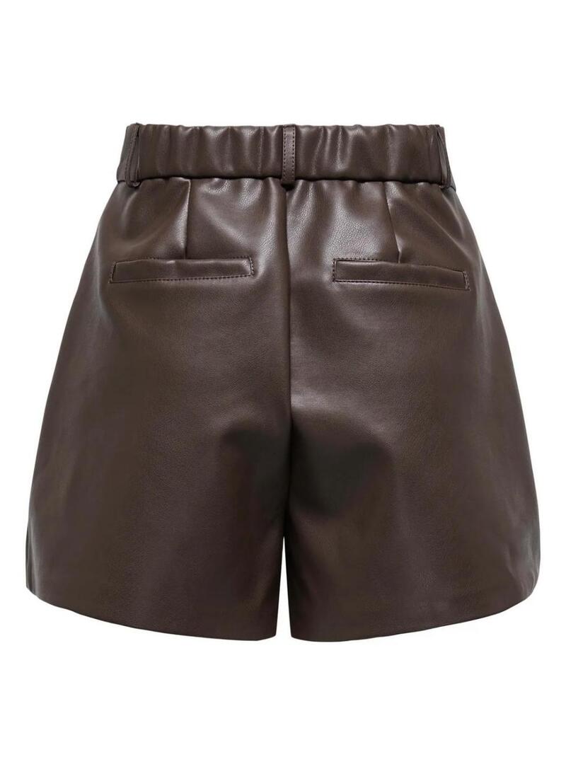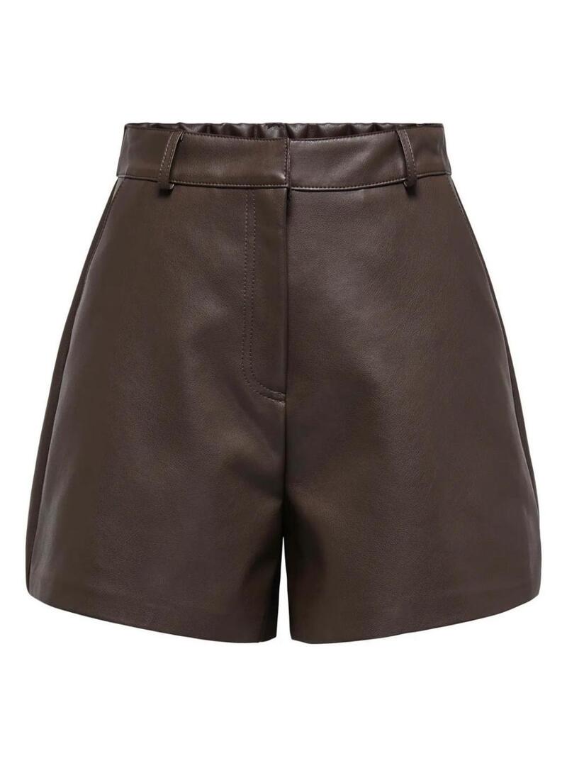 Only pantaloncini. Modello Cora. Colore marrone. Vita alta. Chiusura con bottone e zip. Taglio mini. Tasche laterali. Vestibilità regolare. Tasche a filetto posteriori. Tessuto in ecopelle.