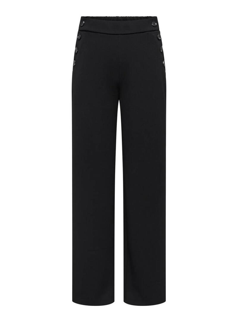 Pantaloni Only. Modello Rina. Colore nero. Vita elastica. Vestibilità diritta. Gamba ampia. Vita alta. Dettagli di bottoni laterali decorativi. Tessuto elastico.