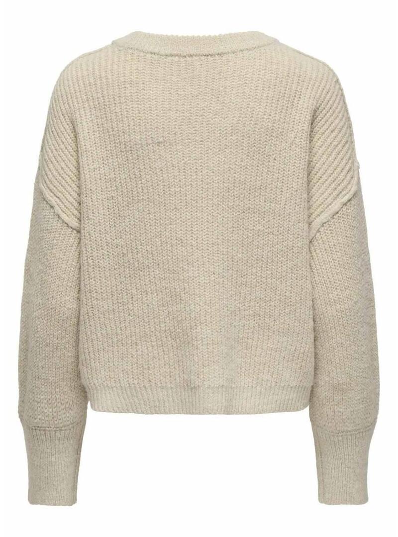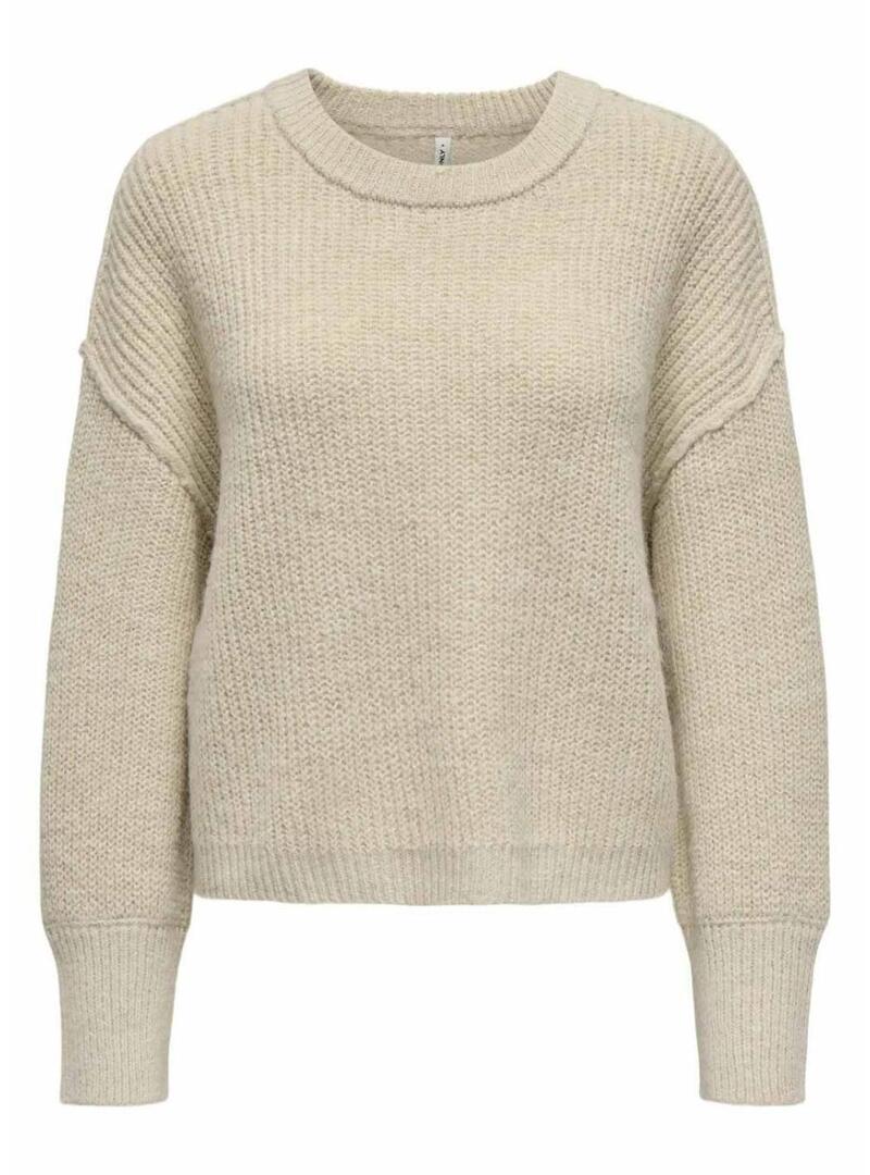 Maglia Only. Modello Mally. Colore beige. Scollo rotondo. Manica lunga. Taglio largo. Spalle cadenti. Tessuto a coste. Tocco morbido. Cuciture decorative a effetto rovescio.
