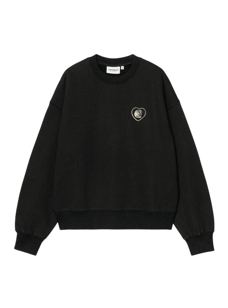 Felpa Carhartt. Modello Hearts. Colore nero. Collo rotondo. Orli a costine. Vestibilità dritta. Logo stampato sul petto e sulla schiena con forme di cuore.