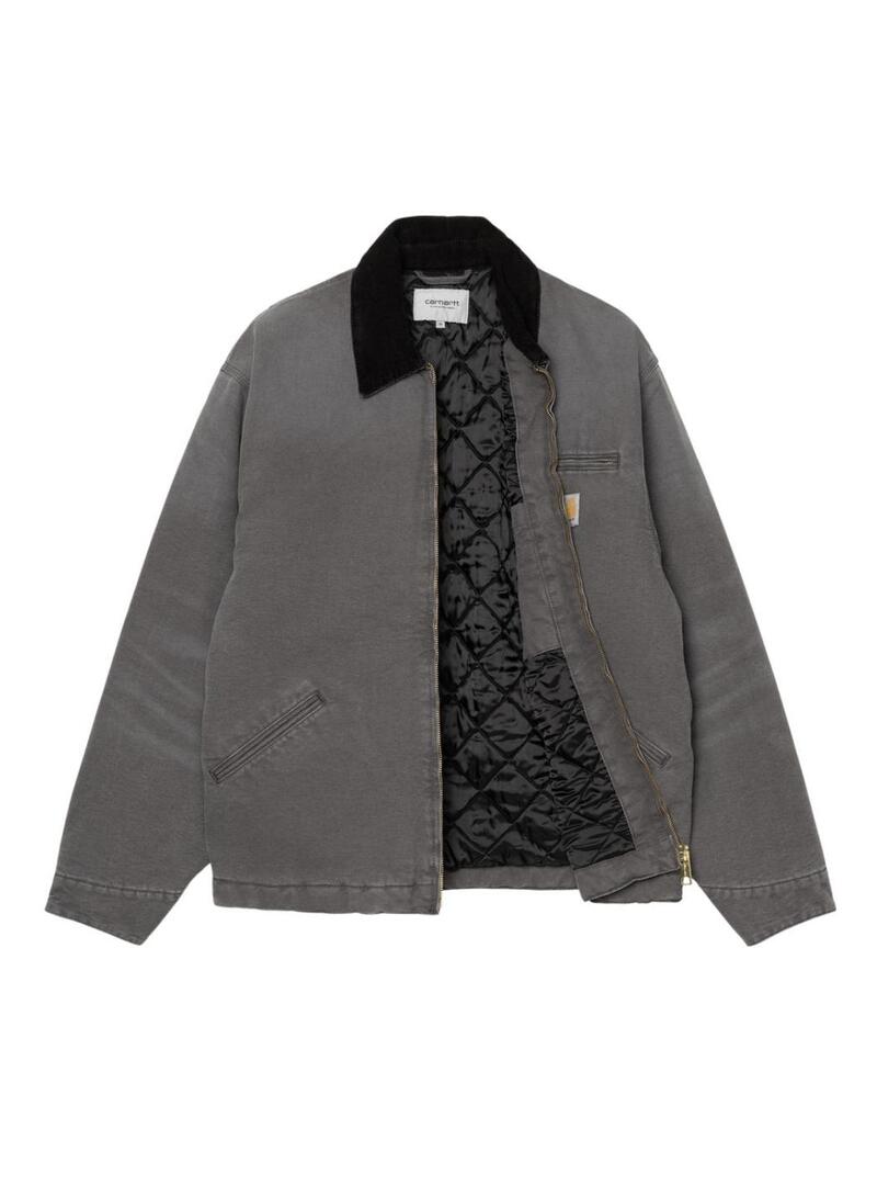 Giacca Carhartt. Modello OG Detroit. Colore grigio. Chiusura con zip. Vestibilità ampia. Tasche laterali. Tasca sul petto. Patch del marchio. Colletti marroni a contrasto. Fodera trapuntata. Tasca interna.