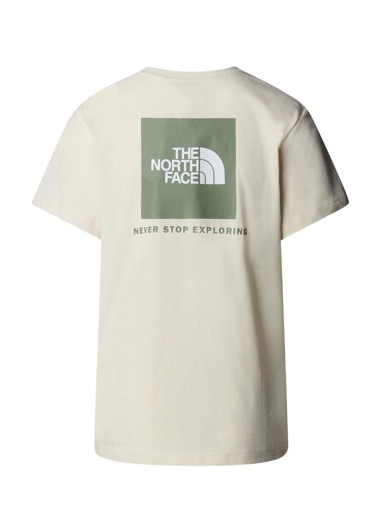 Maglietta The North Face. Modello Box. Colore beige. Collo rotondo. Manica corta. Vestibilità leggermente oversize. Logo stampato sul petto. Marchio stampato sulla schiena in scatola verde.