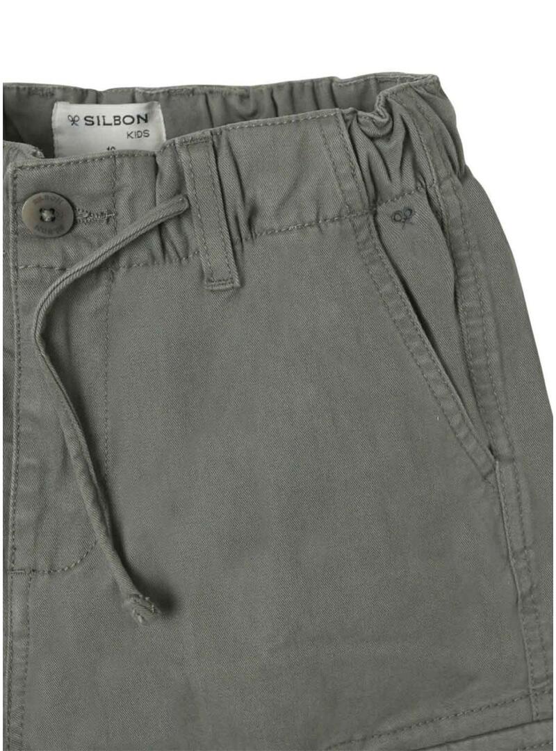Pantaloni Silbon. Modello Sport Cargo. Colore verde. Effetto lavato. Vita elastica con coulisse. Tasche a filetto posteriori. Tasche laterali con patta. Vestibilità slim. Chiusura con bottone e zip.