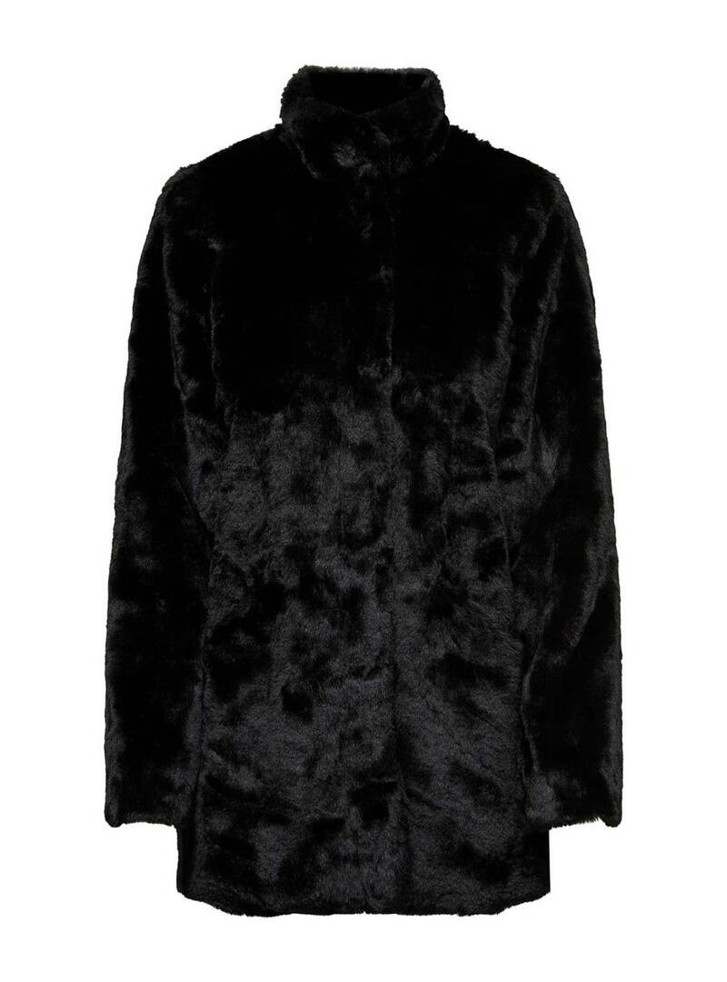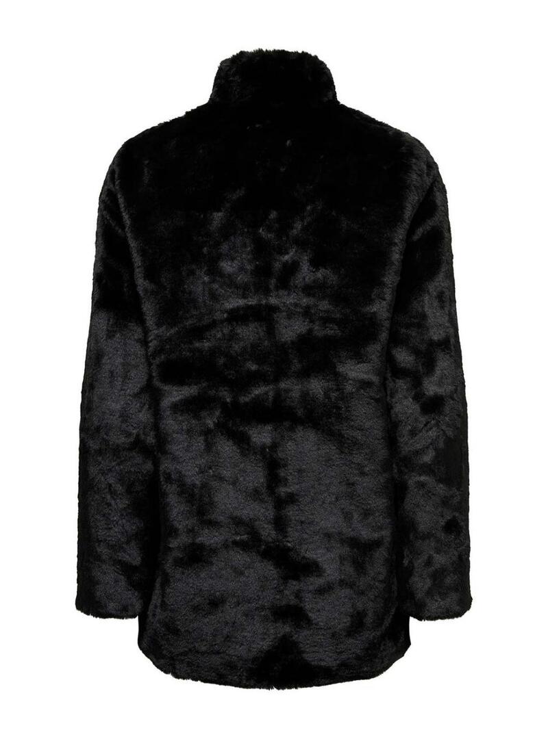 Giacca in pelliccia sintetica Only. Modello Onlvida. Colore nero. Collo alto. Manica lunga. Chiusura con bottoni. Tasche frontali. Morbido al tatto. Fodera in poliestere.