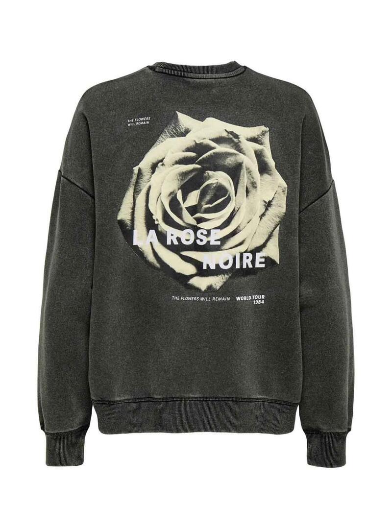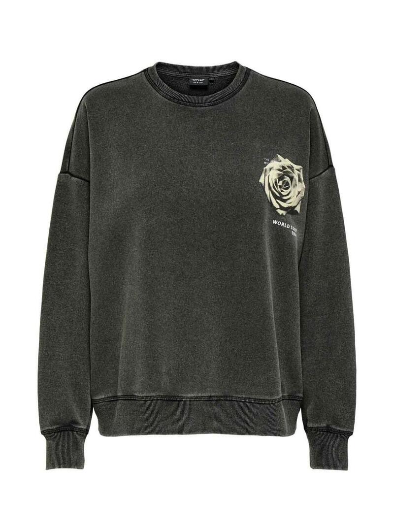Felpa Only. Modello Sinna. Colore nero. Girocollo. Manica lunga. Stampa sul petto e sulla schiena. Finiture a costine. Spalle leggermente cadenti.