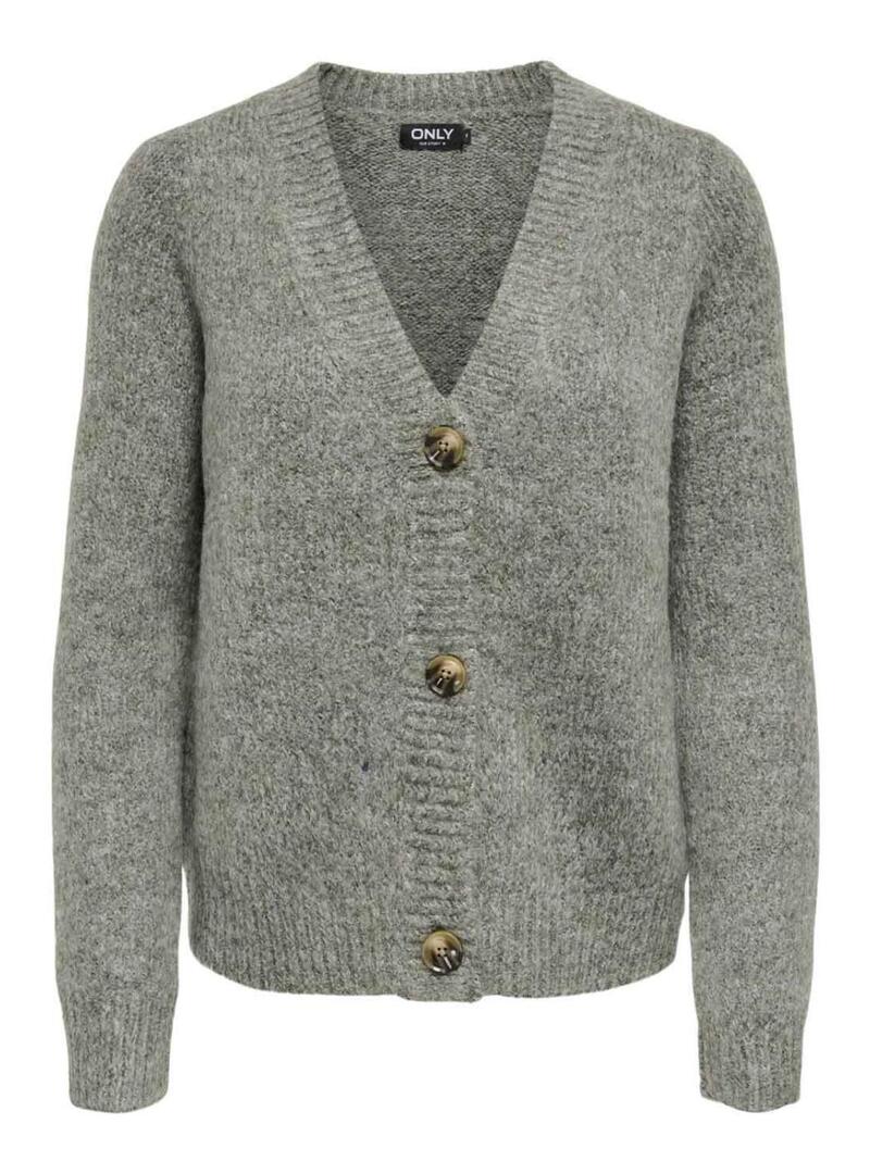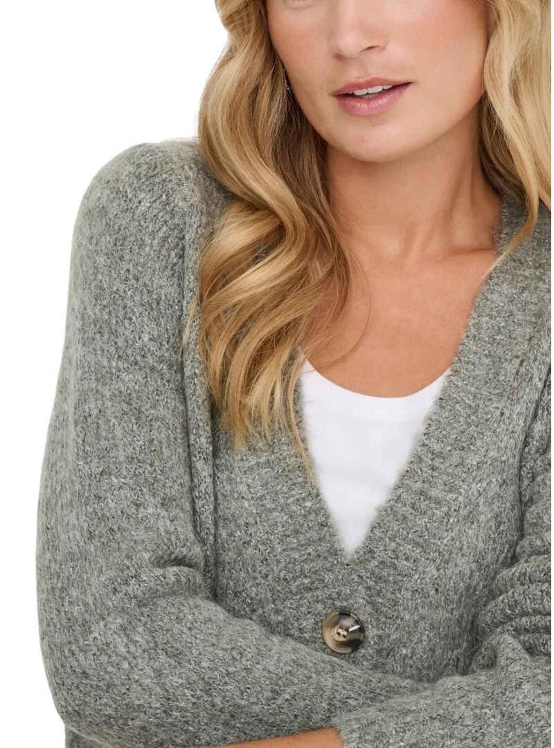 Cardigan a maglia Only. Modello Zoey. Colore verde. Collo a V. Chiusura a bottoni. Finiture a costine. Taglio regolare. Manica lunga.