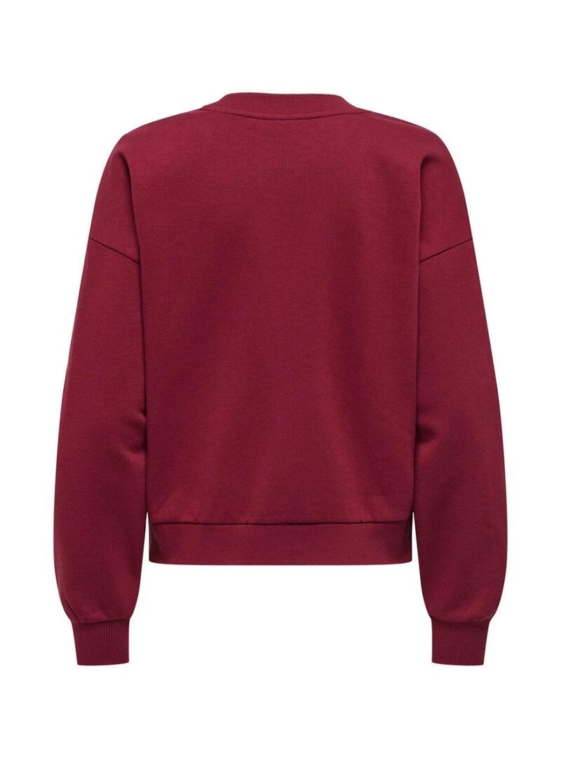 Felpa Only. Modello Onjo. Colore bordeaux. Collo tondo. Manica lunga. Spalle leggermente cadenti. Taglio regolare. Finiture a costine. Stampa sul petto.