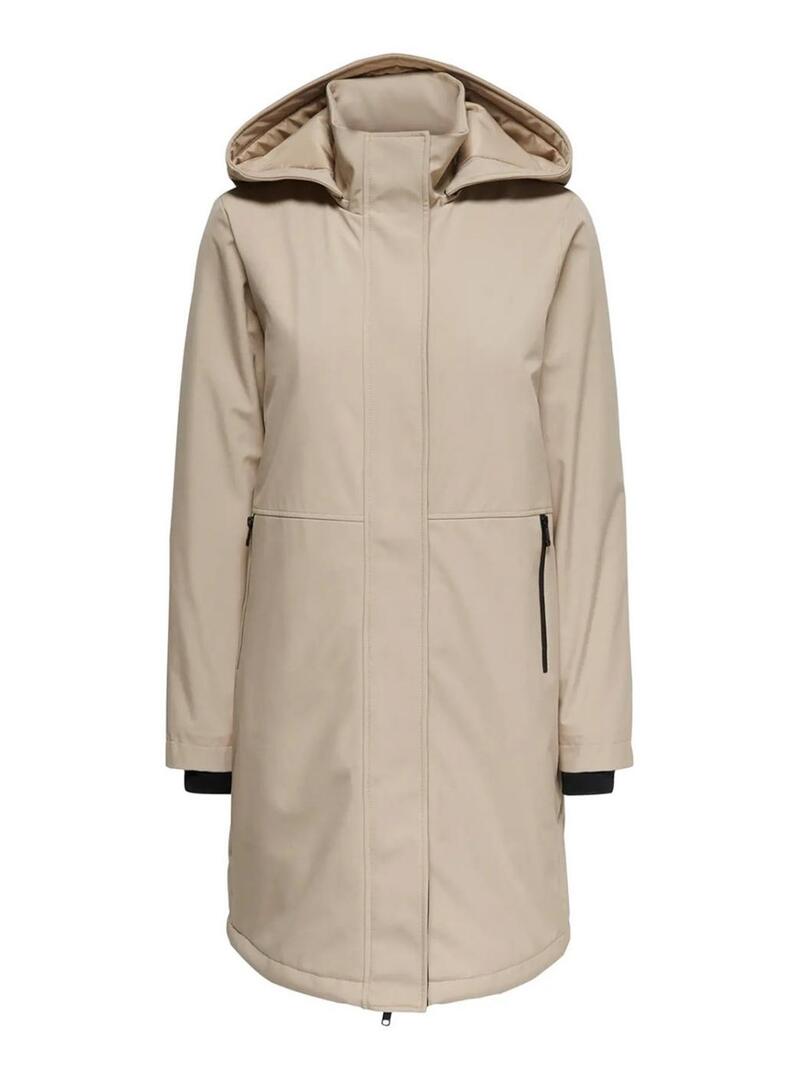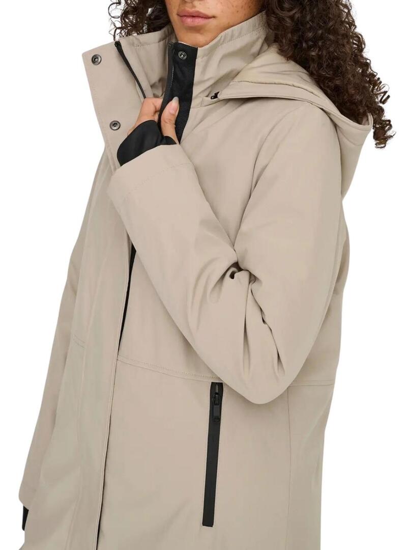 Parka Only. Modello Kara. Colore beige. Manica lunga. Cappuccio rimovibile. Polsini elastici. Chiusura con bottoni a pressione e zip. Imbottitura in poliestere riciclato. Tasche laterali con zip. Taglio: lungo.