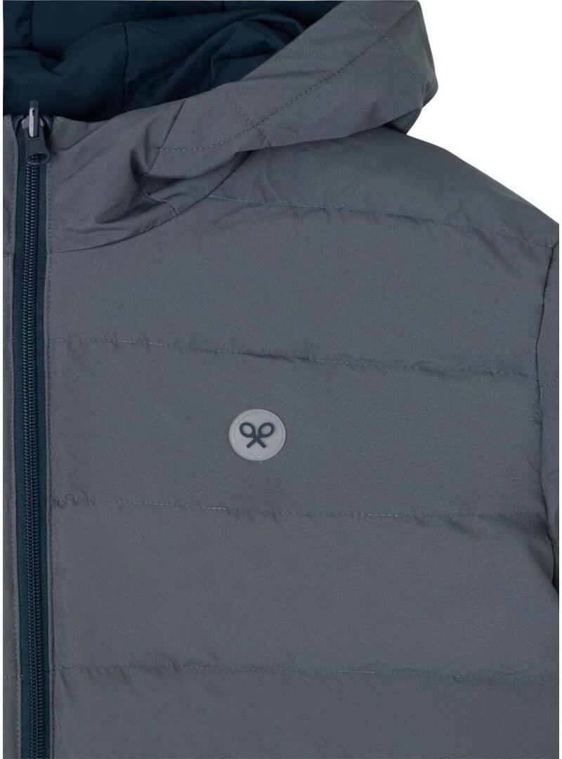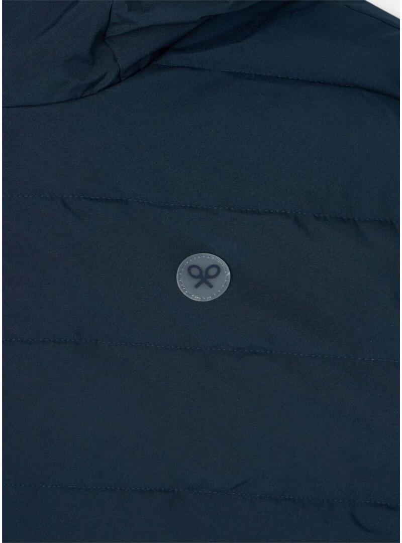 Giacca tecnica Silbon. Modello reversibile. Colore blu scuro e grigio. Vestibilità regolare. Chiusura frontale e tasche anteriori con cerniere termosaldate. Maniglie personalizzate. Colletto alto con cappuccio. Dotato di patch di racchette microiniettate sul torso.