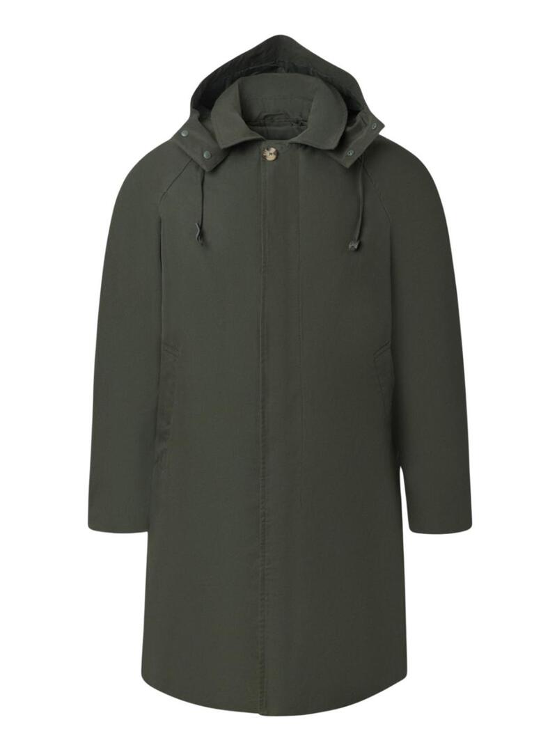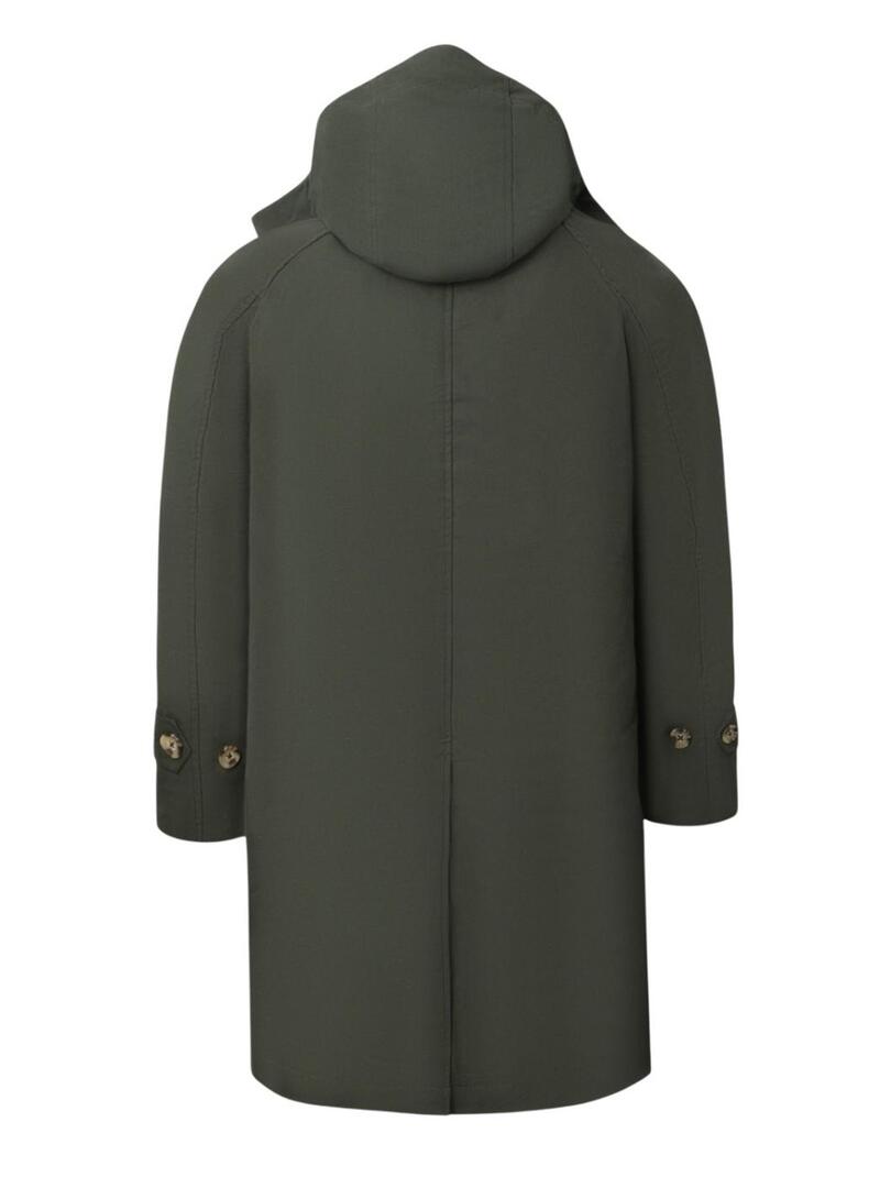 Trench Silbon. Colore verde. Taglio dritto realizzato in una morbida miscela di cotone che garantisce comfort e resistenza. Colletto classico. Chiusura frontale con patta e bottoni personalizzati nascosti e un bottone a vista per un tocco distintivo. Maniche lunghe con regolatori ai polsini. Cappuccio con cordino regolabile per una maggiore protezione e stile. Fodera interna removibile per adattarsi a diverse condizioni climatiche.