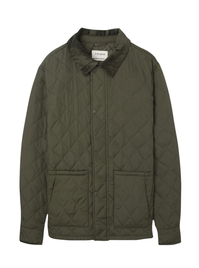 Giacca Silbon. Modello Field. Stile classico. Colore verde. Taglio Regular Fit che offre comfort e libertà di movimento. Colletto a coste a contrasto che aggiunge un tocco elegante e distintivo. Chiusura frontale con zip per una vestibilità sicura e pratica. Maniche lunghe con polsini regolabili tramite snaps. Tasche frontali ampie per una maggiore funzionalità. Fodera interna coordinata che garantisce comfort e isolamento termico. Capo versatile ideale da abbinare a look casual o semi-formali.