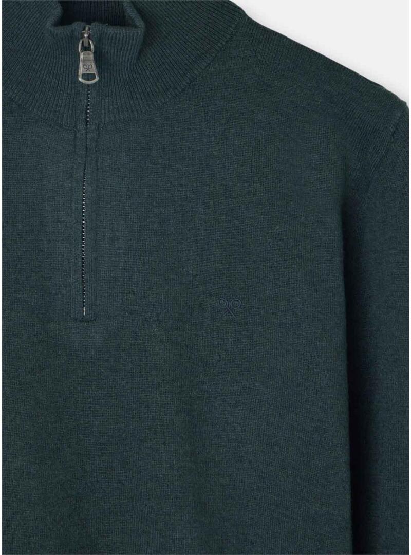 Maglione Silbon. Modello a mezza zip. Colore verde. Realizzato in misto lana. Taglio regular fit. Collo alto con chiusura a mezza zip e tirante personalizzato. Manica lunga. Dettaglio di racchette ricamate sul torace in colore blu scuro.