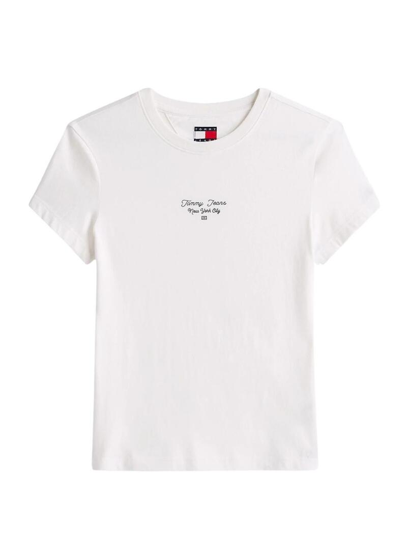 Maglietta Tommy Jeans. Modello Ess Logo. Colore bianco. Collo rotondo. Manica corta. Silhouette aderente. Logo ricamato sul petto.