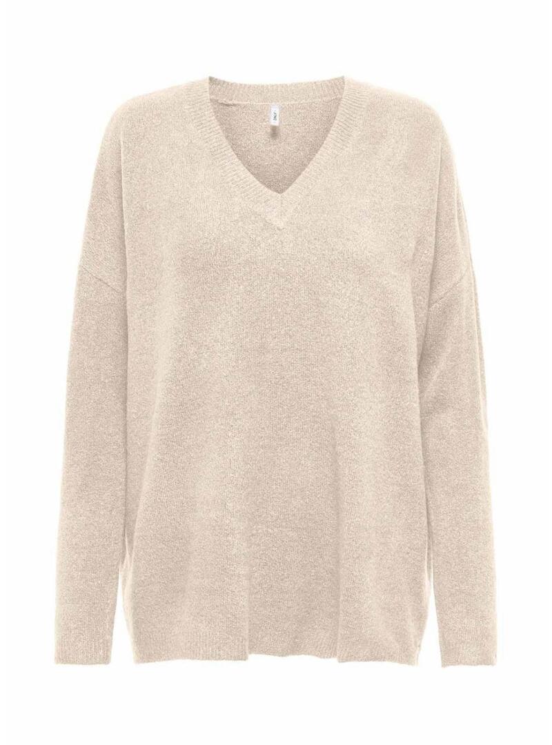 Maglia a maglia Only. Modello Talio. Colore beige. Scollatura a V. Manica lunga. Spalle cadenti. Taglio comodo. Punto confortevole e flessibile.
