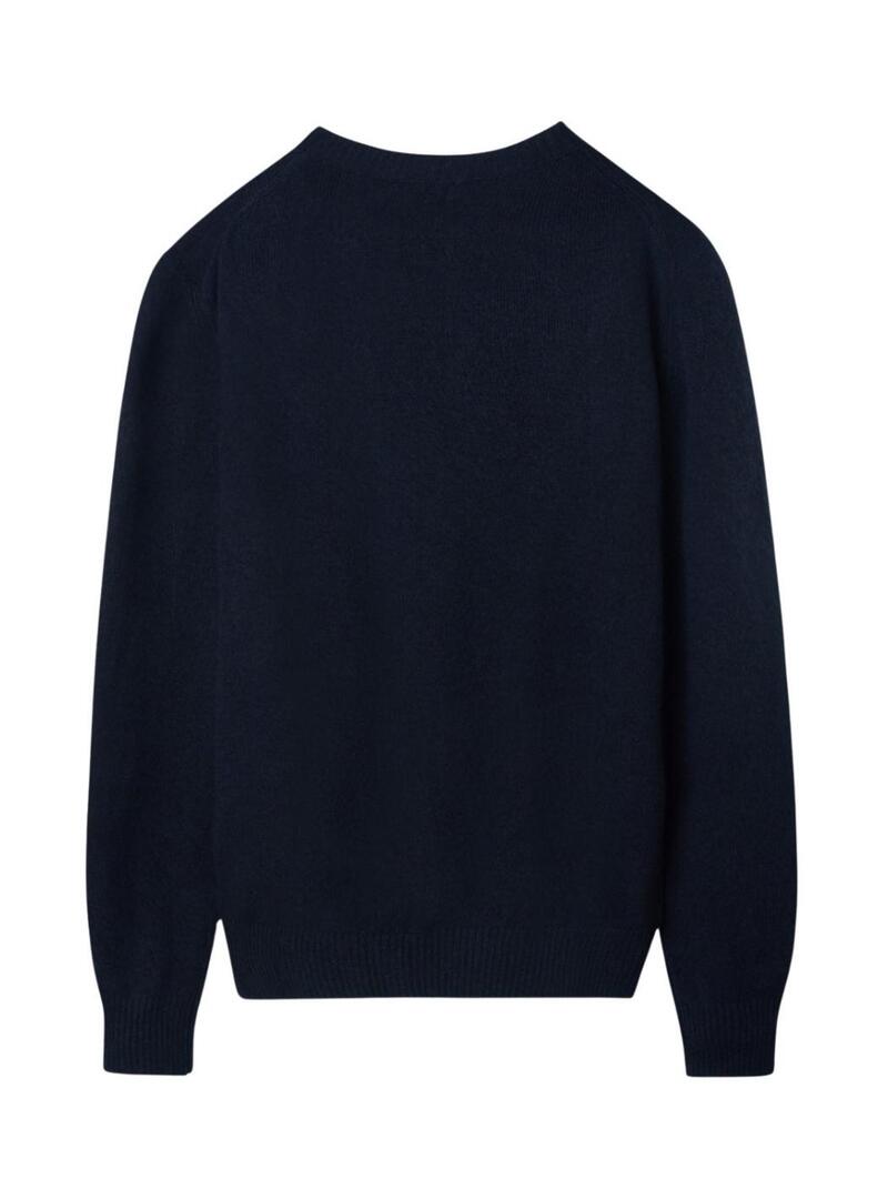 Maglione Silbon. Modello Warm. Colore blu scuro. Realizzato in misto lana e cashmere. Collo rotondo e manica lunga. Ricamo di racchette in contrasto sul torso. Collo, polsini e fondo a coste.