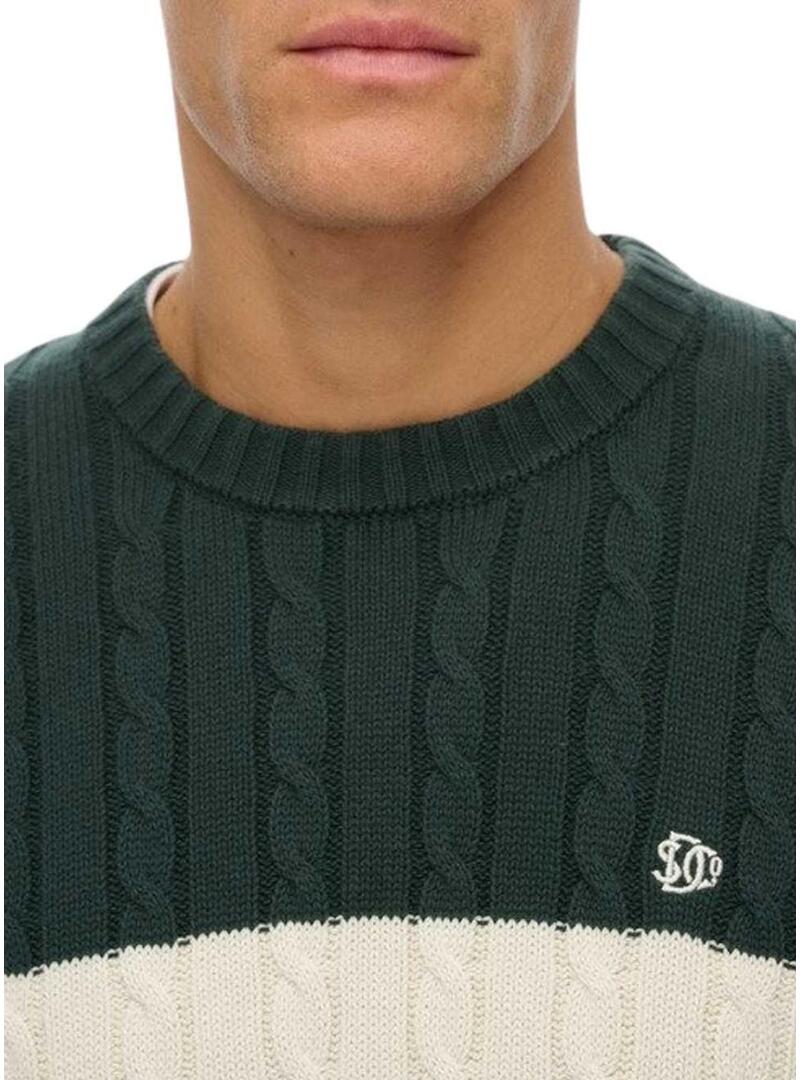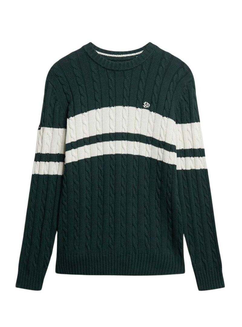 Maglia a righe verdi in cotone Superdry Cable per uomo
