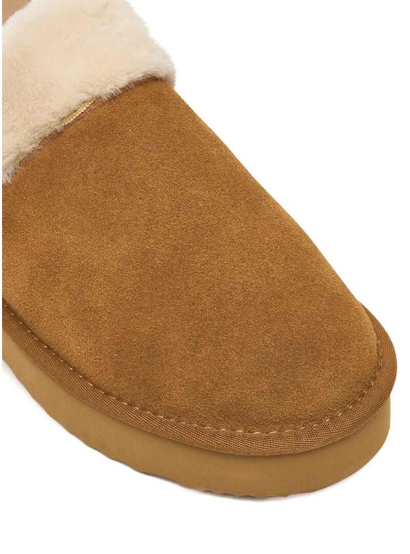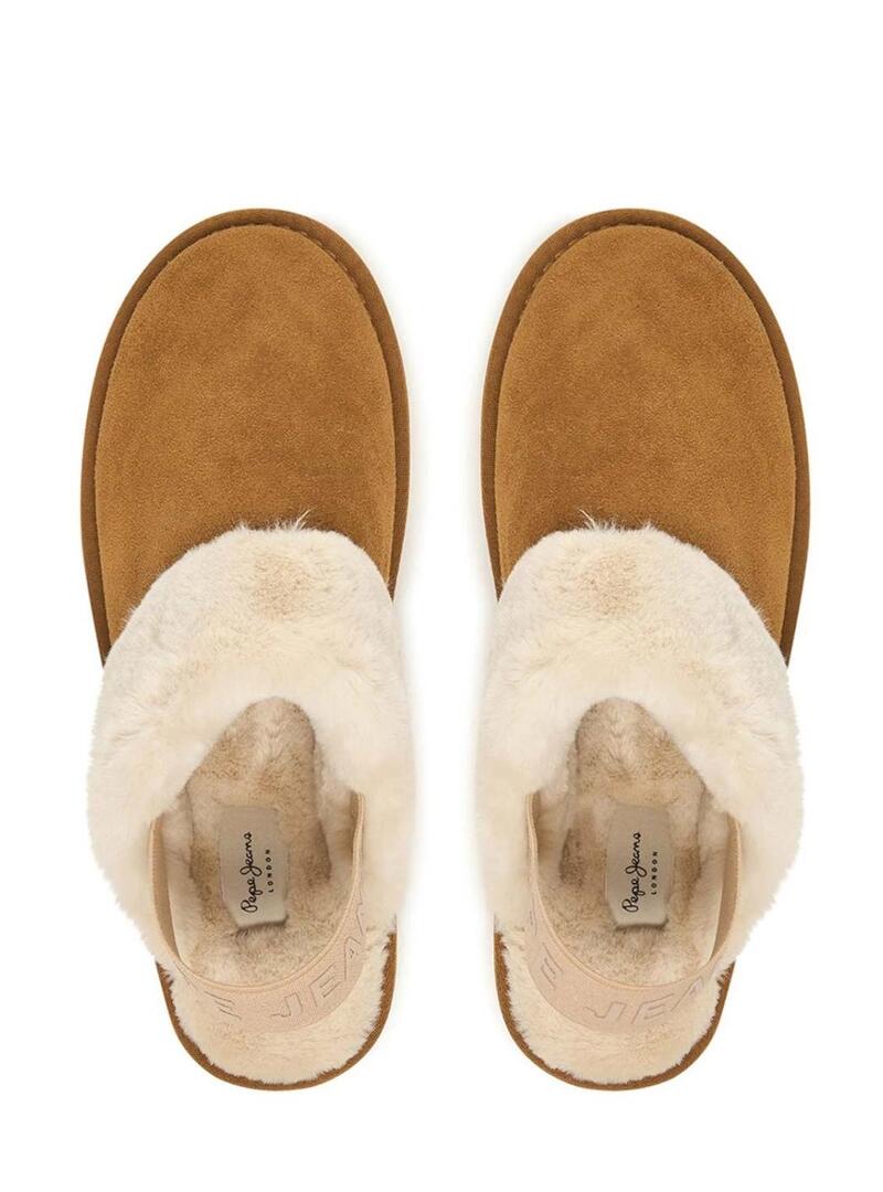 Zoccoli Pepe Jeans. Modello Dissy. Colore cammello. Realizzati in camoscio bovino. Dettagli di pelo di pecora sull'istep. Nastro elastico con logo PEPEJEANS sul tallone. Fodera interna di pelo di pecora. Suola a piattaforma con motivo antiscivolo. Orlo in tessuto a nastro sulla parte superiore della suola. Etichetta con logo PEPEJEANS sull'imbottitura.