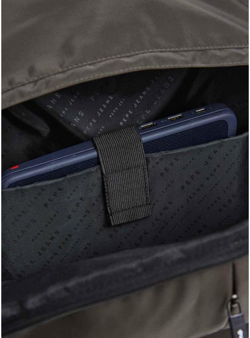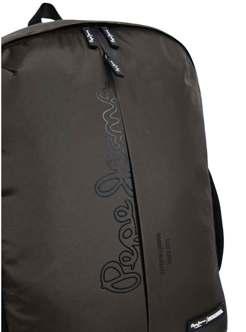Zaino Pepe Jeans. Modello Devin. Colore nero. Compartimento principale con chiusura a zip e maniglia in gomma con logo in rilievo. Tasca interna imbottita per laptop. Manico superiore corto per appendere. Spallacci imbottiti e regolabili. Tasca anteriore ausiliaria con chiusura a zip. Tasche laterali in rete. Logo PEPEJEANS in posizione verticale sulla parte anteriore. Dimensioni: 13,5 cm x 32 cm x 46,5 cm.