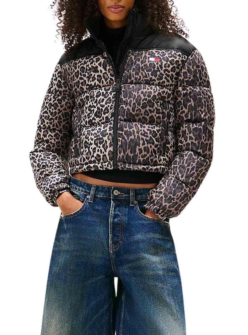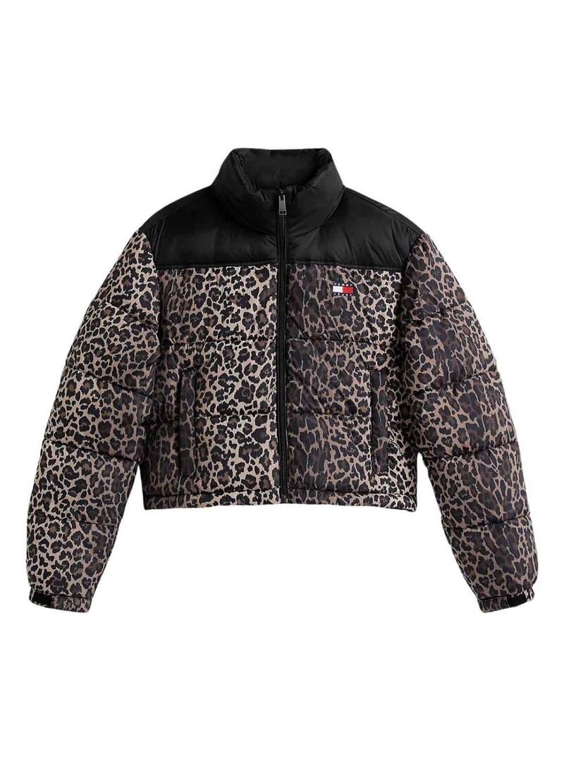 Giacca trapuntata Tommy Jeans. Modello Leopard. Colore marrone e nero. Stampa animalier. Chiusura con zip. Collo alto. Patch del marchio sul petto. Tasche con zip. Polsini elastici. Taglio corto. Vestibilità diritta.