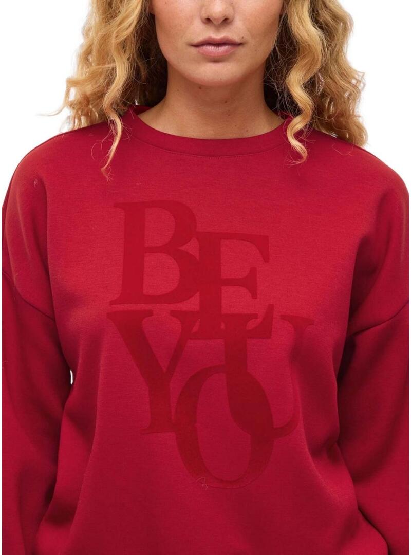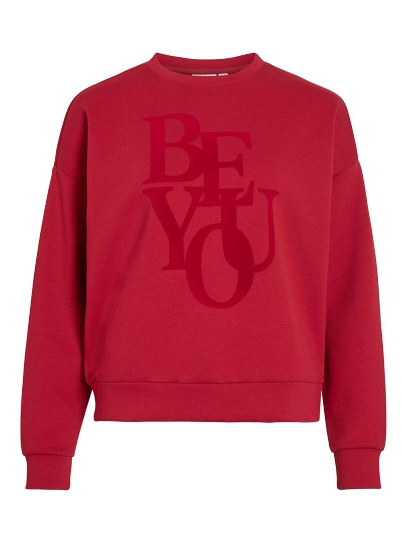 Felpa Vila. Modello Reflect. Colore rosso. Collo tondo. Manica lunga. Tessuto morbido. Estremità elastiche. Messaggio Be You stampato sul davanti in tinta con il tessuto.