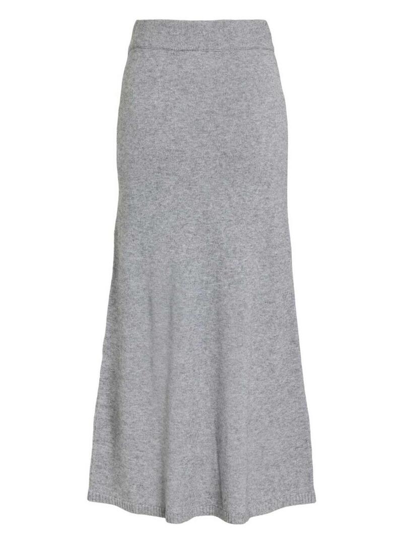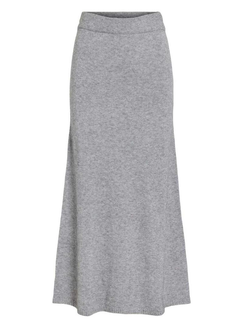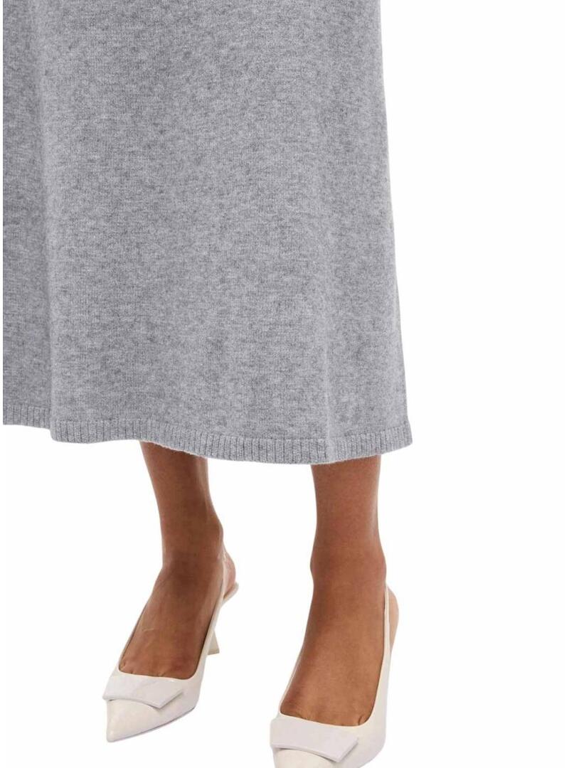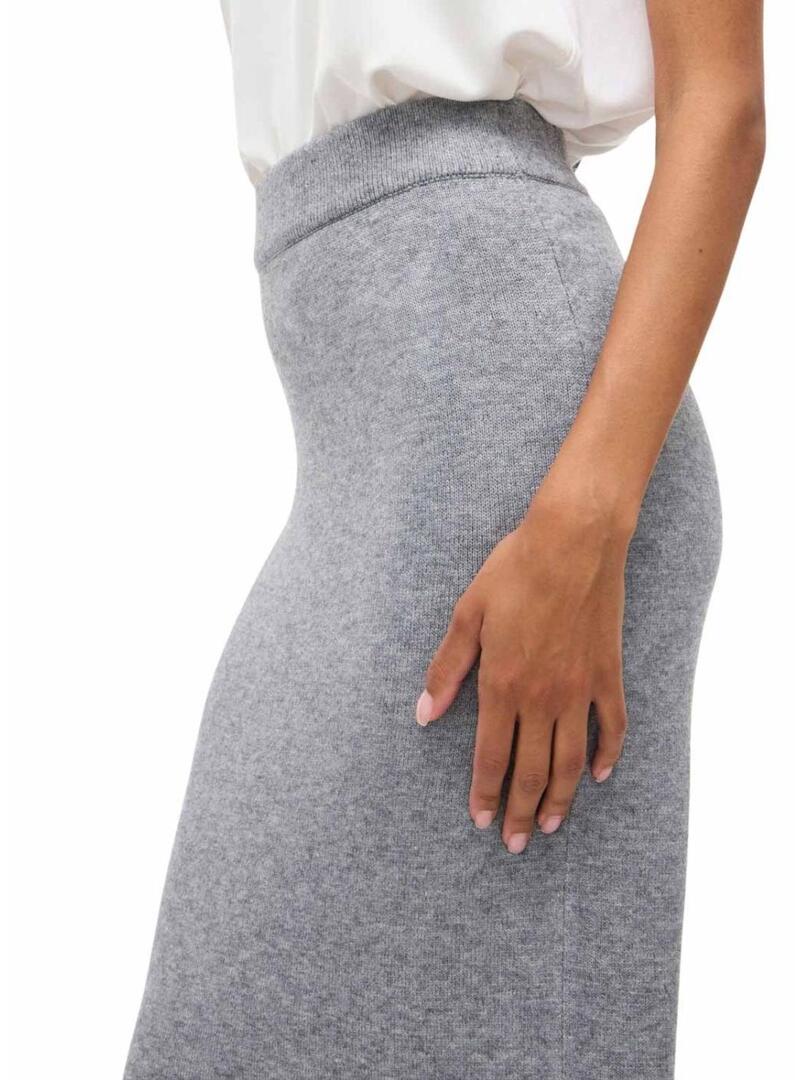 Gonna Vila. Modello virile. Vita elastica. Colore grigio. Tessuto a maglia morbido che si adatta al corpo. Taglio midi. Stile basic.