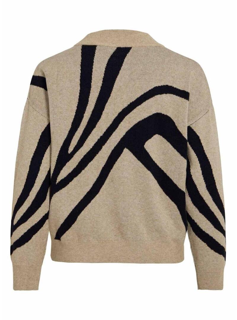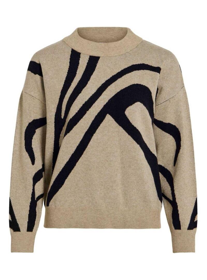 Maglia Vila. Modello Vitif. Colore beige. Stampa jacquard in colore nero. Collo rotondo. Spalle cadenti. Vestibilità oversize. Orli a costine.