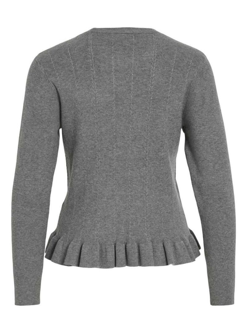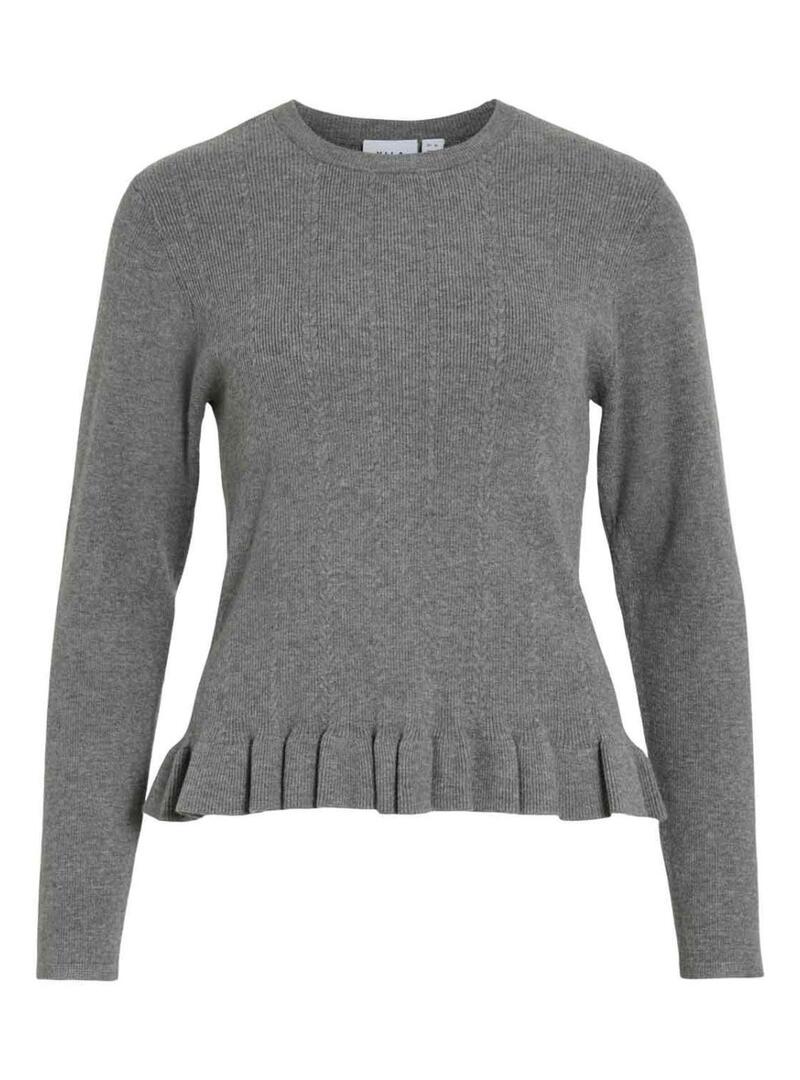 Maglione Vila. Modello Vinorthy. Colore grigio. Collo tondo. Taglio aderente. Manica lunga. Tessuto a costine. Fondo con balza.