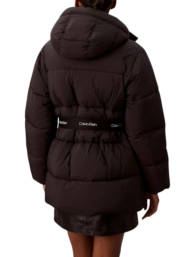 Giacca trapuntata di Calvin Klein Jeans. Modello Belted Midweight. Colore nero. Tessuto antivento e impermeabile. Cappuccio regolabile con cordino. Orli elasticizzati. Chiusura con zip e bottoni a pressione. Tasche sui fianchi. Isolamento in piume sintetiche riciclate. Cintura removibile con logo Calvin Klein.