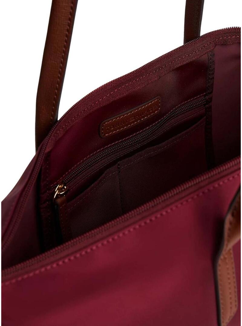 Borsa tote Tommy Hilfiger. Modello Popette. Colore granata. Realizzato in nylon ampio e flessibile. Chiusura superiore con cerniera. Due manici superiori in pelle di vacchetta marrone. Compartimento principale spazioso con tasca interna con cerniera e due tasche interne aperte. Dettaglio del monogramma TH sul davanti e finiture distintive di Tommy Hilfiger. Misure: 48 x 14 x 32 cm. Capacità: 10,3 L.