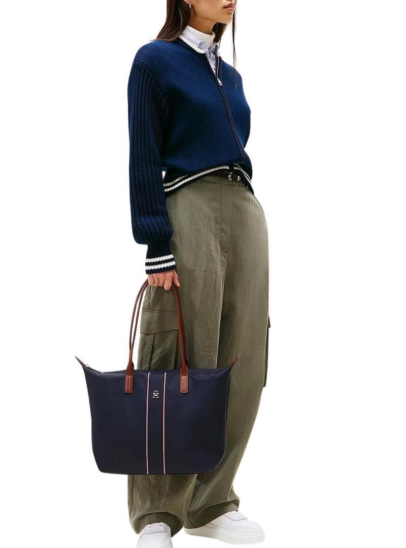 Borsa tote Tommy Hilfiger Popette in corpo blu scuro per donna