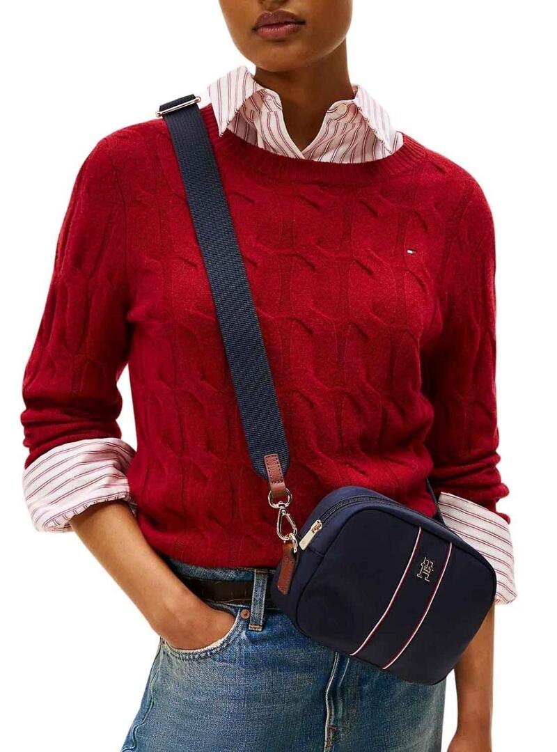 Borsa portafoglio Tommy Hilfiger. Modello Popette. Stile a tracolla. Colore blu navy. Realizzato con finitura liscia e dettaglio intrecciato sulla parte anteriore. Chiusura con zip. Tracolla intrecciata regolabile e rimovibile. Compartimento principale con tasca interna con zip e compartimento esterno aggiuntivo con zip. Decorato con l'emblema del monogramma TH sulla parte anteriore e i dettagli caratteristici di Tommy Hilfiger. Misure: 21 x 5 x 17 cm. Capacità: 1,5 L.