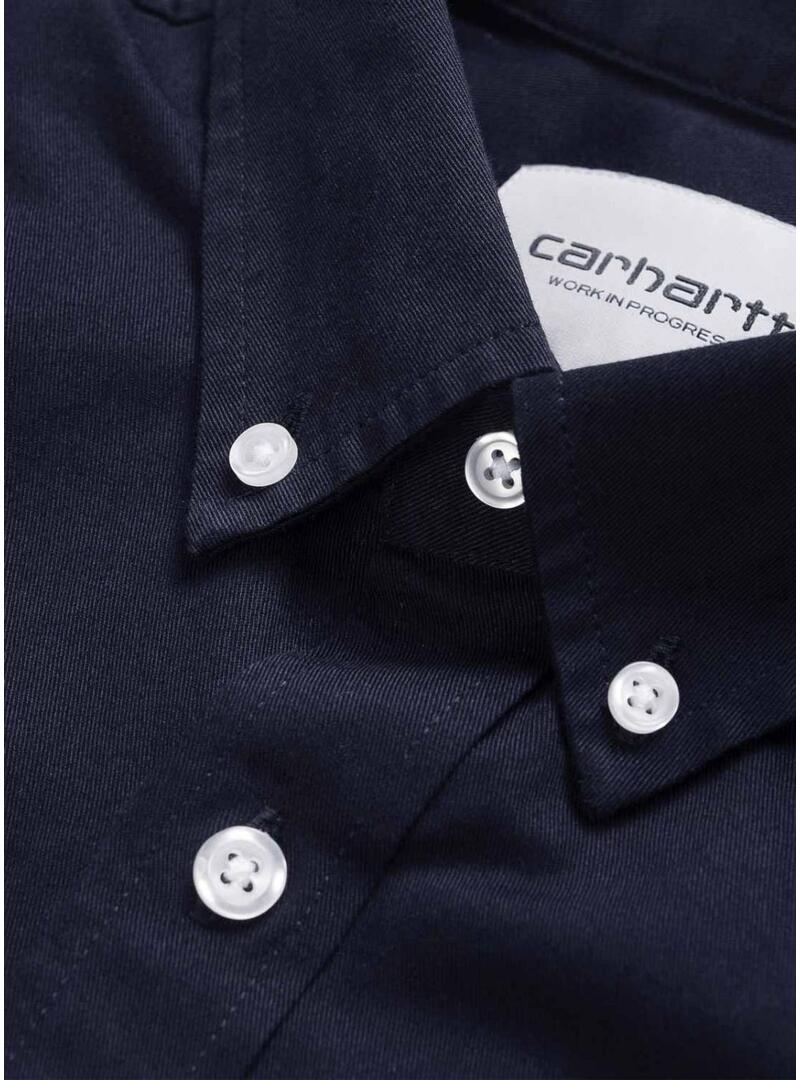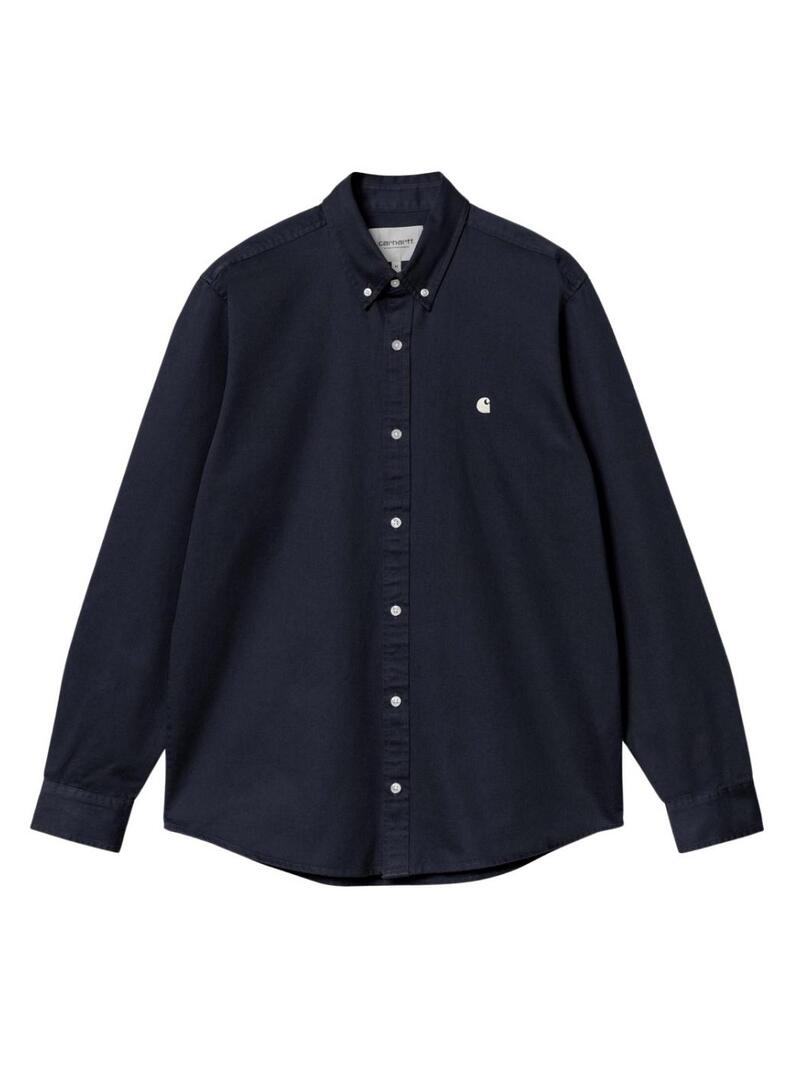 Camicia Carhartt WIP. Modello Madison. Colore blu scuro. Estetica utilitaria. Design classico. Colletto con bottoni. Chiusura a bottoni. Logo ricamato sul petto. Vestibilità regolare. Trattamento di lavaggio intensivo per una morbidezza maggiore.