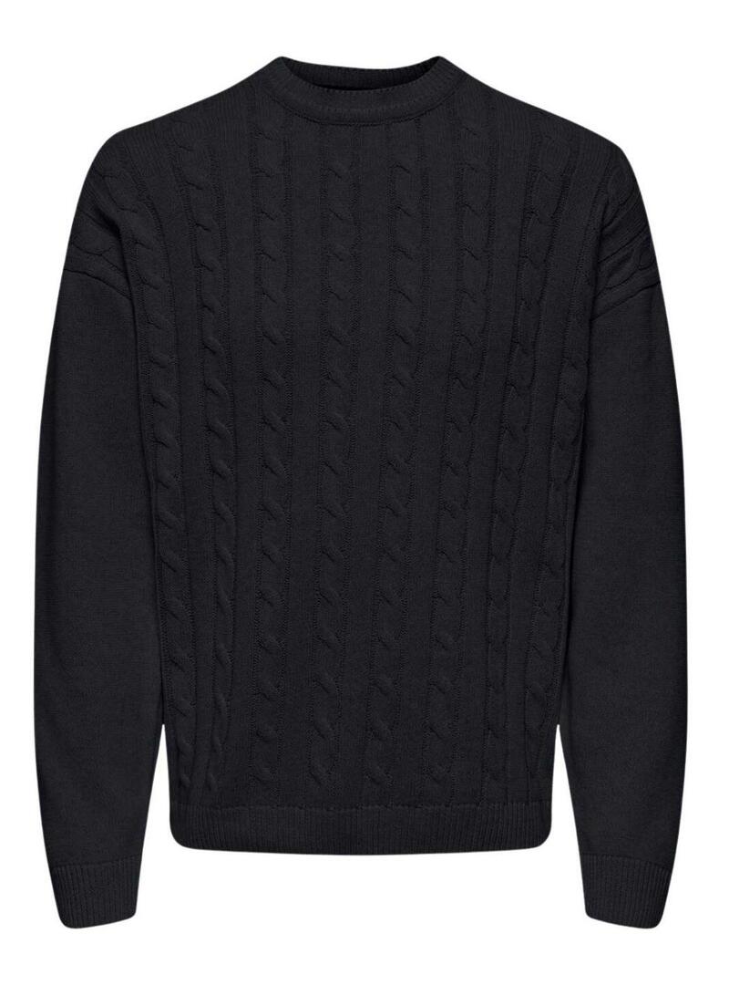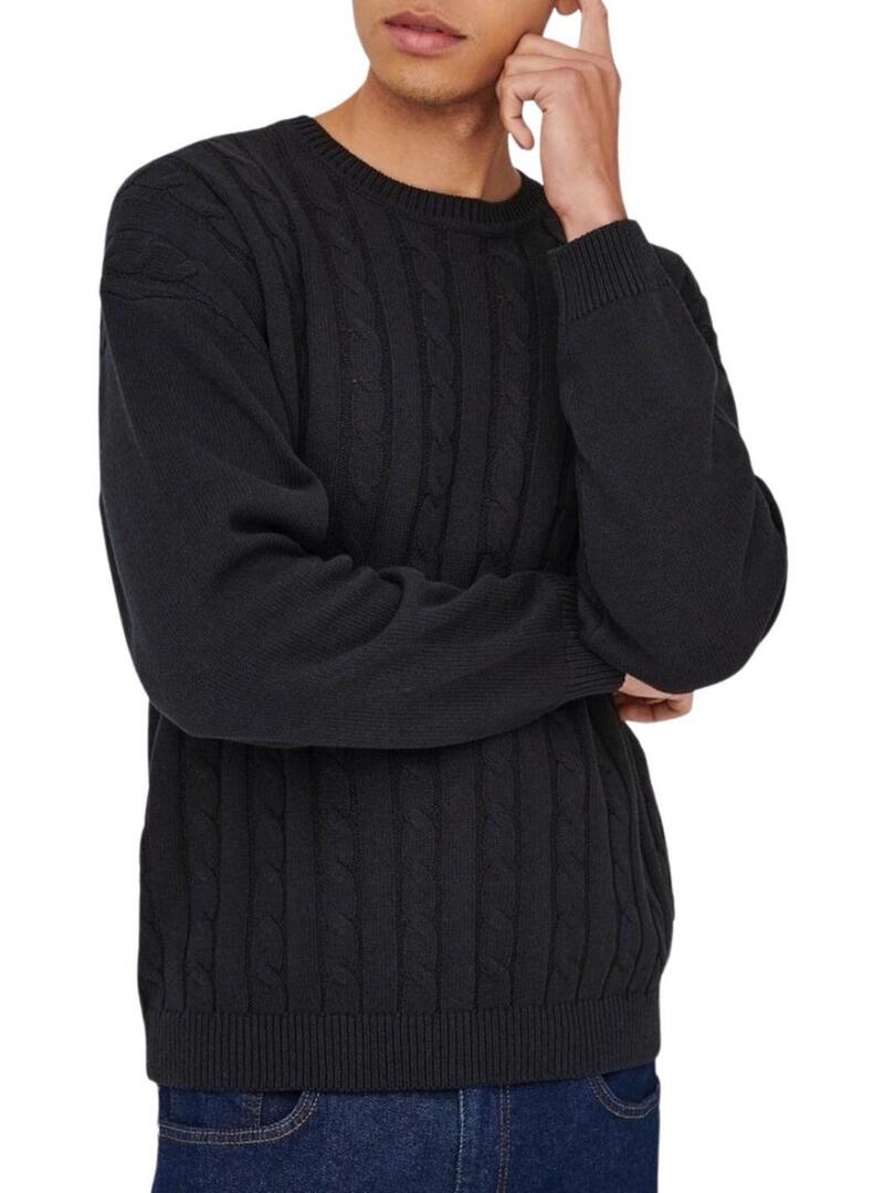 Maglia Only and Sons. Modello Lamard. Colore blu scuro. Collo rotondo. Vestibilità regolare. Manica lunga. Orli a costine. Tessuto intrecciato.