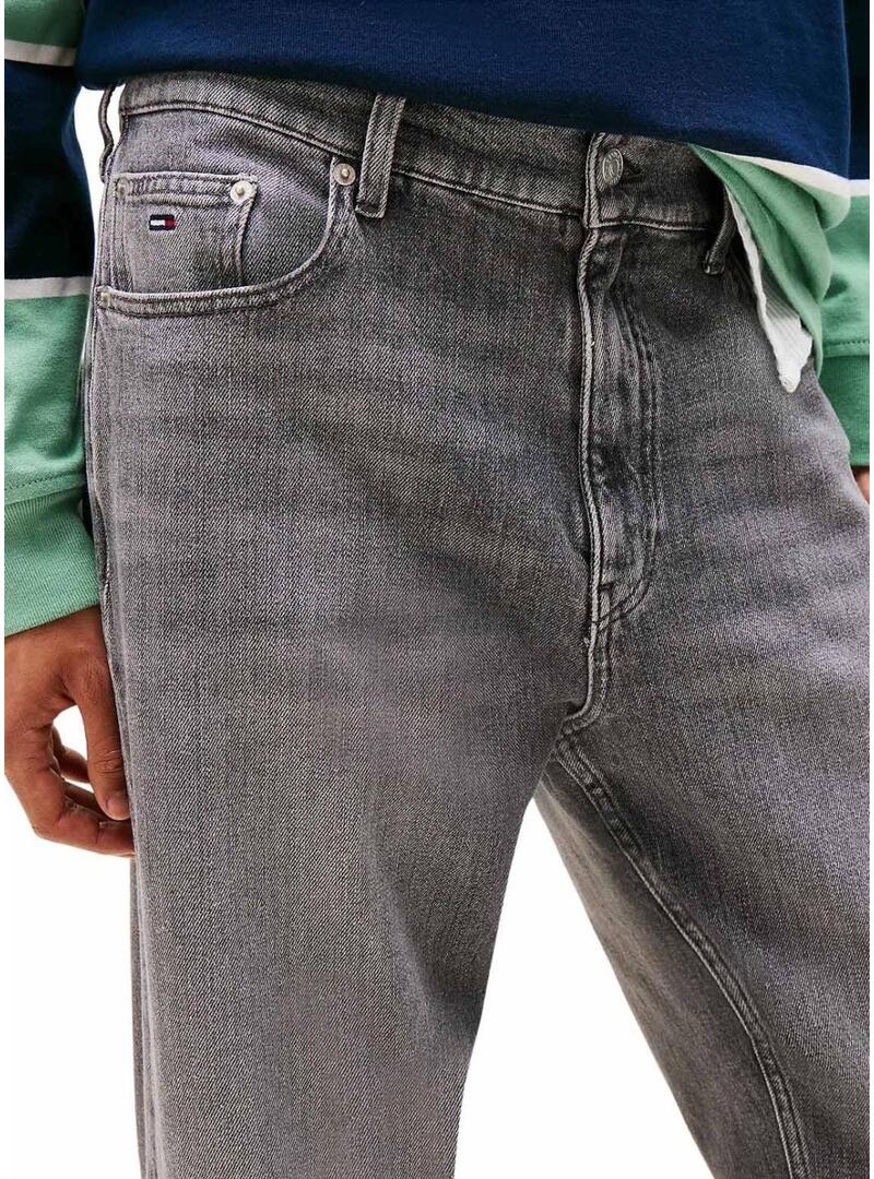 Pantaloni in denim Tommy Jeans. Modello Sonny. Colore grigio. Effetto lavato. Vita media con taglio regolare e gamba leggermente conica. Realizzati in denim di cotone elasticizzato con effetto sbiadito sulle cosce, ginocchia e parte posteriore. Chiusura con zip e bottone. Stile a cinque tasche. Dettagli distintivi di Tommy Jeans, inclusi il logo ricamato sulle tasche posteriori.