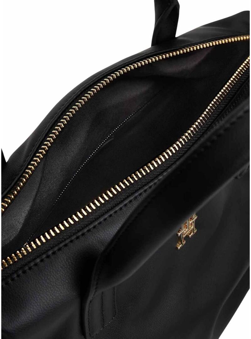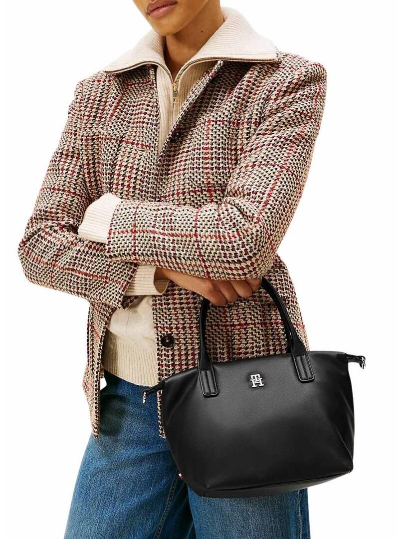 Borsa minitote Tommy Hilfiger. Modello Popette mini. Colore nero. Linee morbide. Finitura liscia. Chiusura lampo. Due manici superiori. Tracolla intrecciata rimovibile. Design con scomparto principale e tasca interna con zip. Monogramma TH sul davanti. Dettagli distintivi di Tommy Hilfiger. Misure: 34 x 14 x 21 cm. Capacità: 7 L.