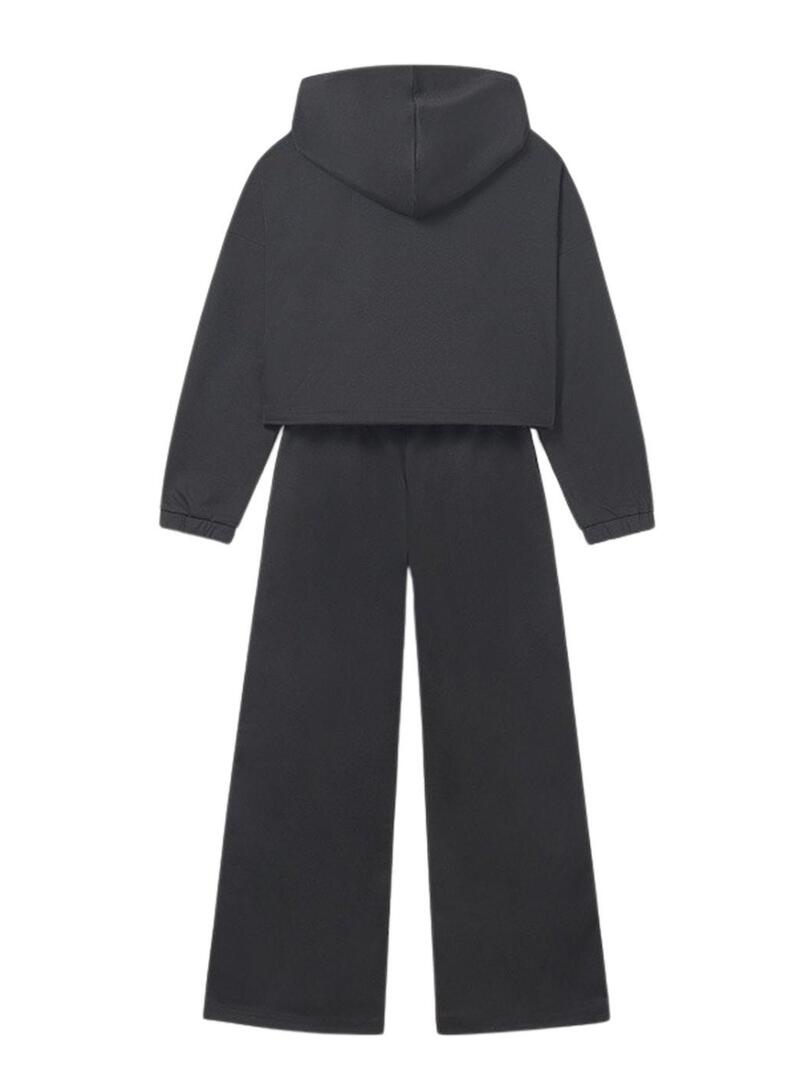 Tuta Mayoral. Modello con bande sportive. Colore nero. Felpa oversize. Collo con cappuccio. Fondo con elastico regolabile. Pantaloni lunghi. Gamba ampia. Aperture con bottoni a pressione. Vita elastica.