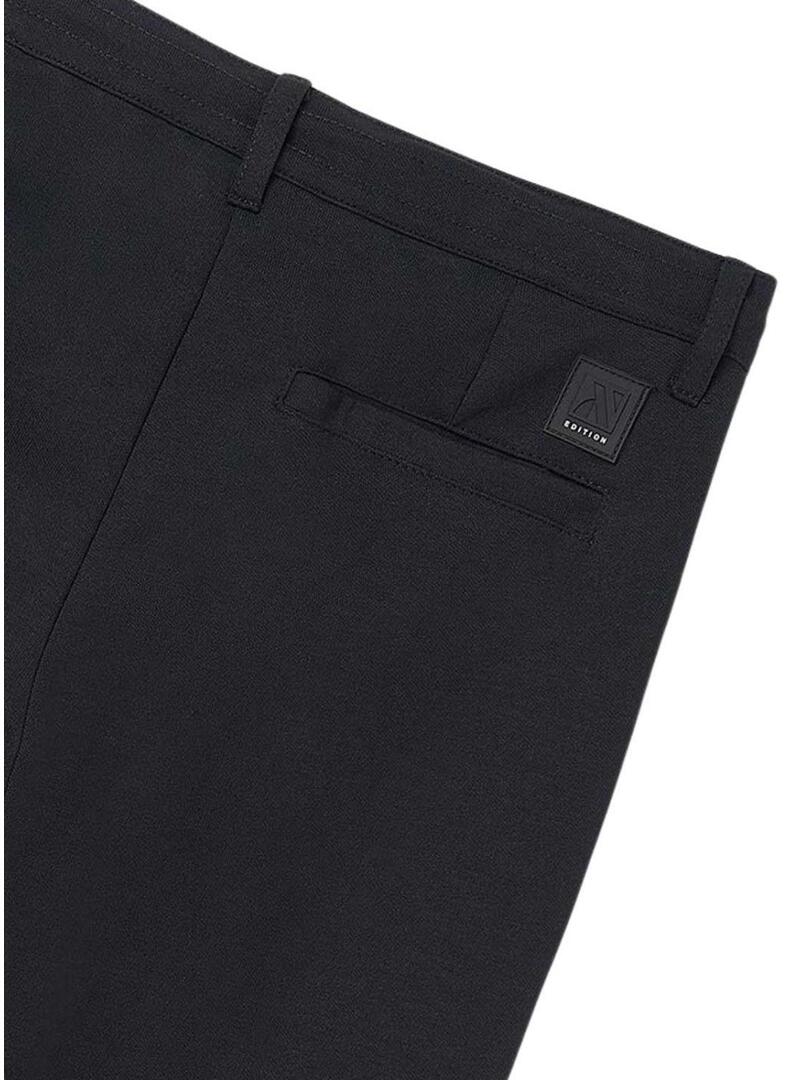 Pantaloni Mayoral. Modello punto smart. Colore nero. Vita elastica con coulisse regolabile. Chiusura con bottone e zip. Tasche laterali. Taglio slim. Tasca posteriore a filetto. Patch del marchio.