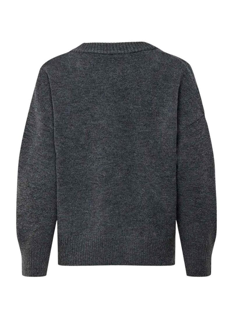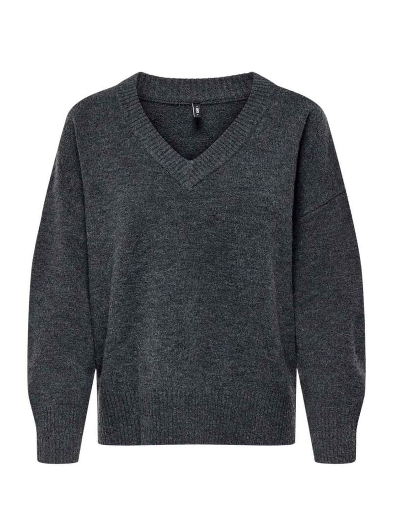 Maglia Only. Modello Mari. Colore grigio scuro. Scollo a V. Vestibilità oversize. Estremità a costine. Stile basic.