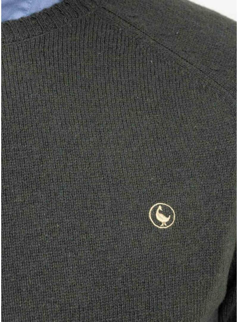 Maglia El Ganso. Modello Merno. Collo rotondo. Colore verde. Estremità a coste. Logo ricamato sul petto. Taglio regolare. Tessuto caldo in lana merino.